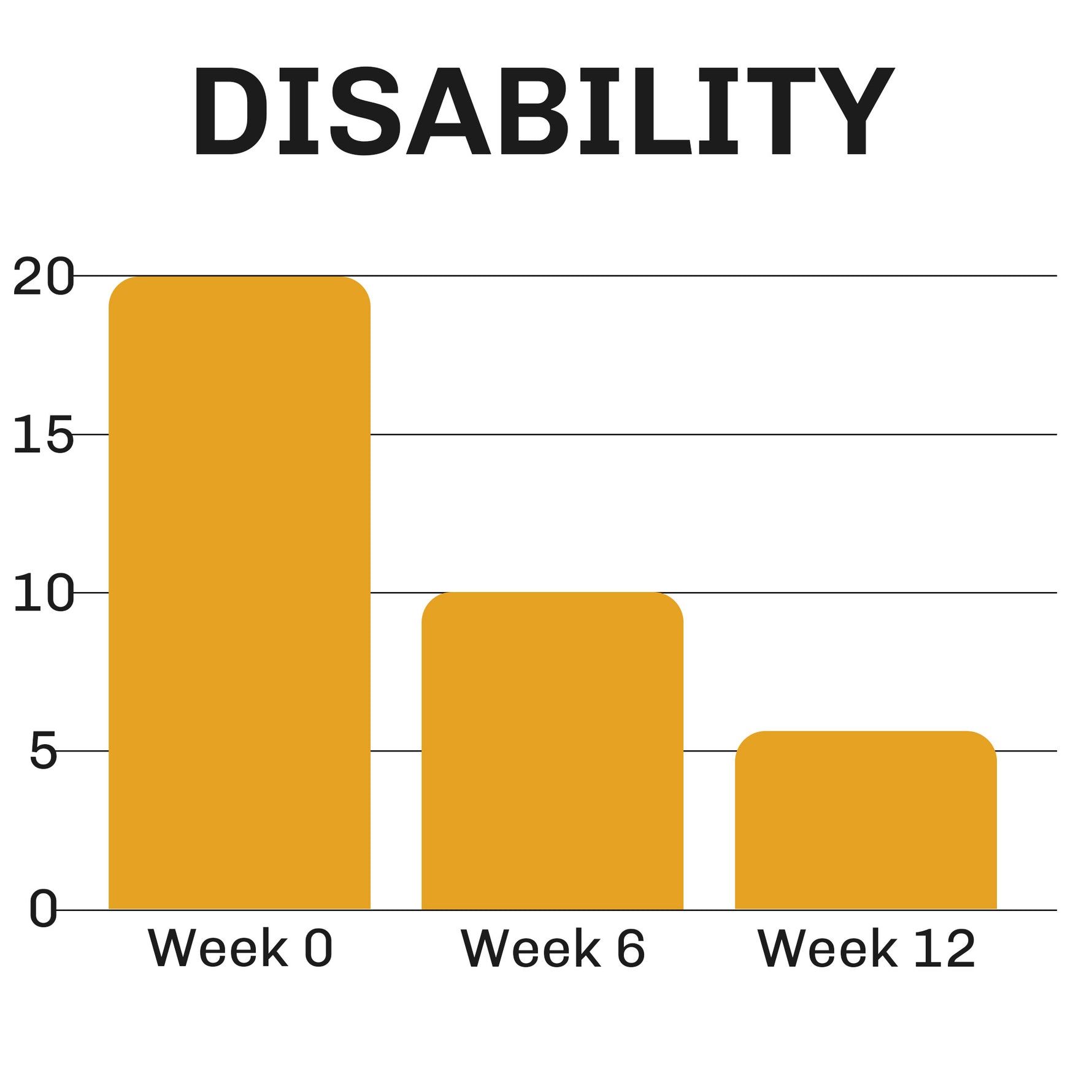 50.8% reduction in impairment at 6 weeks.71.2% at 12 weeks.
