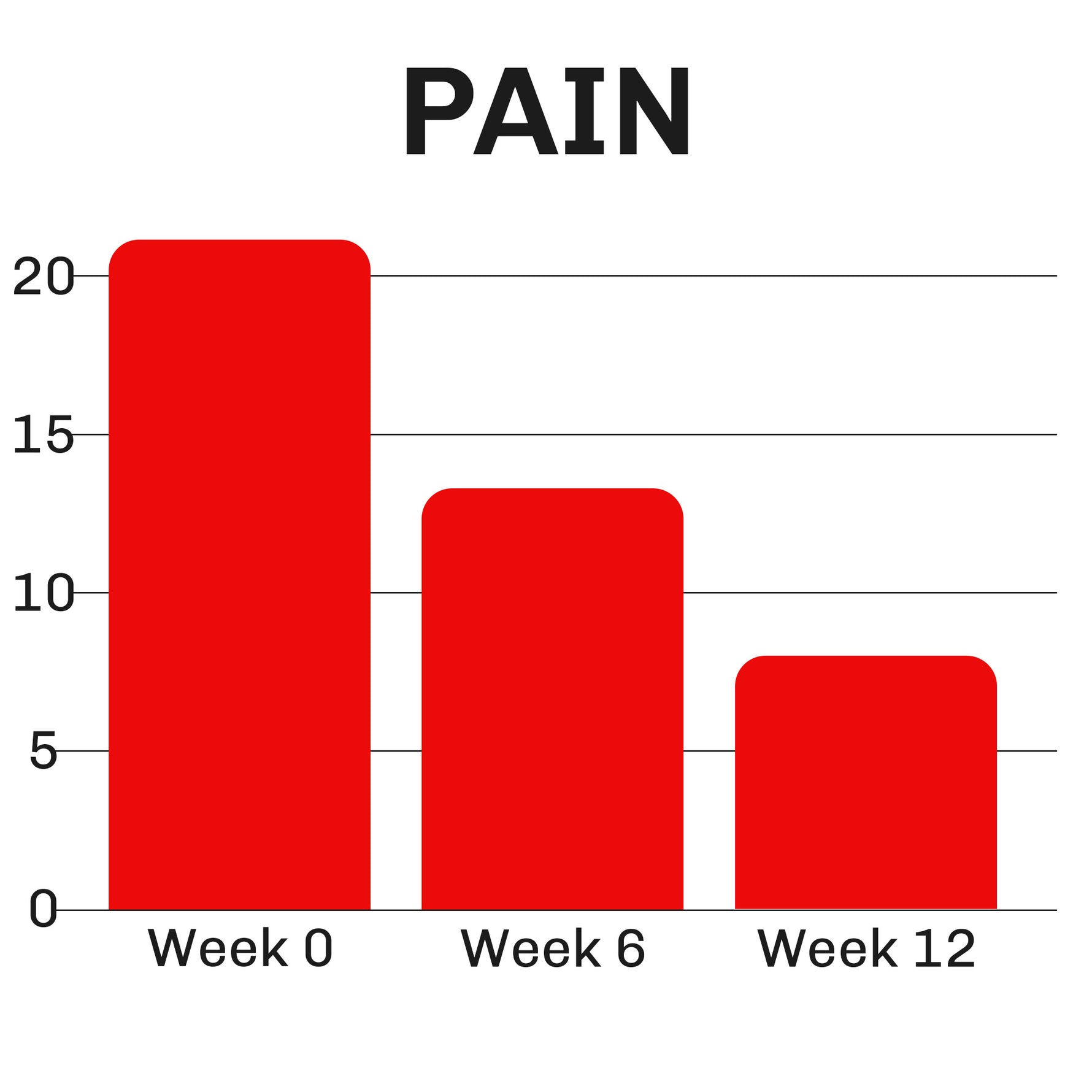 43.5% reduction in pain at 6 weeks.64.6% at 12 weeks.