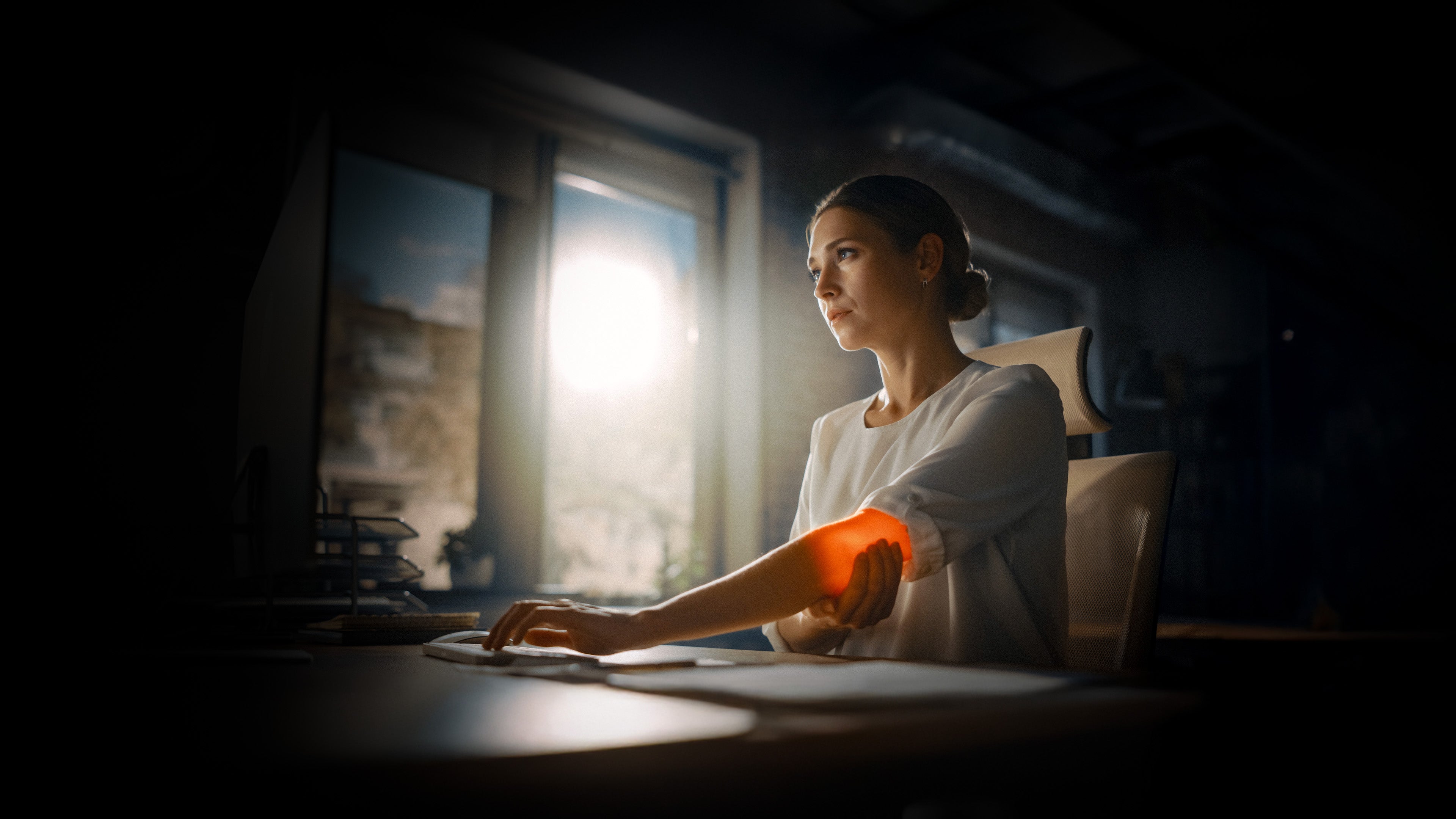 Sitting at a desk all day, typing, or using a mouse can cause repetitive strain on your forearm and elbow, sometimes resulting in tennis elbow. Poor posture and prolonged activity tighten muscles and increase discomfort.